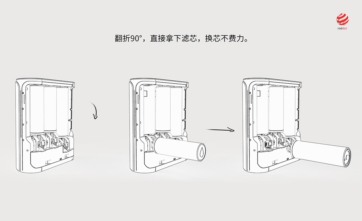 這款凈水器外觀設計為現代極簡風,但設計最大的亮點在于內部的結構設計;